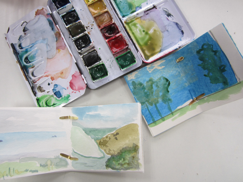 Techniques mixtes (fusain, technique des 3 crayons, sanguine) et dessin aquarellé, d’après les œuvres présentées dans l’exposition.