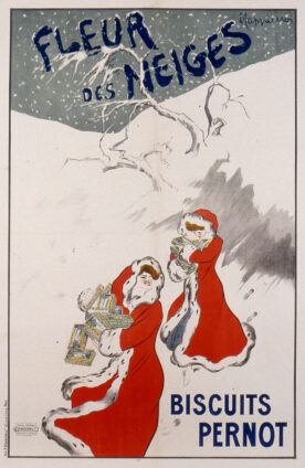 Le biscuit « Fleur des neiges » est une gaufrette fondante à la vanille élaborée par la manufacture des biscuits Pernot. Comprenant que la publicité accompagne le succès commercial, l’entreprise fait appel à un artiste talentueux, Leonetto Cappiello. Celui-ci est considéré comme l’un des précurseurs de l’affiche moderne : images simples, choc des couleurs, arabesque « structure essentielle de la composition ».