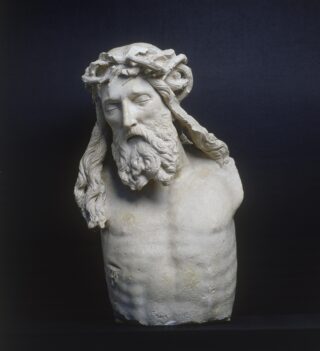 Le fragment, un buste scié juste au-dessus de la taille et dont les bras manquent, est une image saisissante du Crucifié, à la fois douloureux et apaisé. Le réalisme des détails physiques ou expressifs, sans être homogène, est savamment dosé. Le traitement de ce visage exténué de souffrance, avec ses sourcils froncés, ses joues creuses, ses yeux clos et la bouche entrouverte, a conduit à évoquer l’étude d’individus récemment décédés ou même la pratique du masque funéraire. La barbe soigneusement taillée et les cheveux aux torsades régulières confèrent une certaine noblesse à la figure. Quelques gouttes de sang s’échappent de la plaie du flanc droit.
