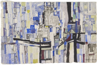 Cette aquarelle a été intitulée par Vieira da Silva « Étoile-Nation » en écho à la ligne de métro aérien qu’elle a longtemps empruntée, quand elle habitait boulevard Saint-Jacques à Paris avec son mari, le peintre Arpad Szenes. C’est dans cet atelier du n°51 que le couple occupait depuis 1938, qu’ils se réinstallent en 1947 à leur retour d’exil au Brésil. Une peinture, Le Métro aérien exécutée cette même année 1955, évoque aussi ce thème.