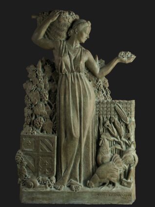 Ce bas-relief dérive du programme décoratif de l’Exposition internationale de 1937, pour lequel Albert David avait conçu deux bas-reliefs, pour la façade du Pavillon Bourgogne Franche-Comté Pays de l’Ain : La Franche-Comté et La Bourgogne et la Bresse.