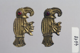 Le motif du rapace est inspiré de l’aigle romain qui était un symbole de puissance et de victoire durant l’Antiquité. Il est très apprécié par les populations mérovingiennes qui l’intègrent dans l’ornementation de nombreux objets, particulièrement celle des fibules. Ces deux exemplaires, qui prennent intégralement la forme de ces oiseaux de proie, étaient portés au-dessus de la poitrine par les femmes mérovingiennes.