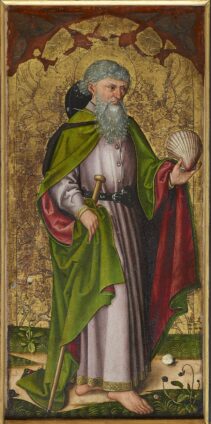 Cette peinture était initialement la face interne d’un volet de retable. Deux autres volets du même ensemble, un Saint Georges conservé à Chalons-en-Champagne, et un Saint Barthélémy conservé à Wurtzbourg, sont aujourd’hui identifiés.