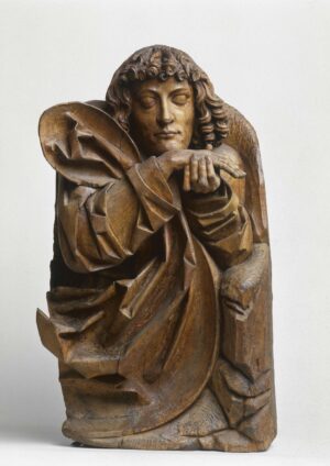 Ce haut-relief de bois avec saint Jean endormi provient probablement d’une composition plus importante illustrant la prière du Christ au mont des Oliviers, scène où sont associés le Christ, à qui un ange présente un calice symbolisant l’acceptation de sa destinée, et trois de ses apôtres, Pierre, Jacques et Jean, qui se sont endormis.