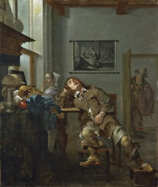 Peintre néerlandais, Jacob Duck se spécialise dans les scènes de genre aux thématiques savoureuses mais souvent moralisatrices, comme ce tableau qui dénonce les vices de la nature humaine.